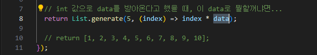 그러면 List.generate를 했을 때 이 data 값이 내가 입력해둔 3이란 값이기 때문에