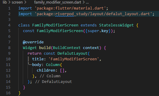 riverpod/family_modifier_provider.dart 파일을 만들고 provider를 생성해준다.