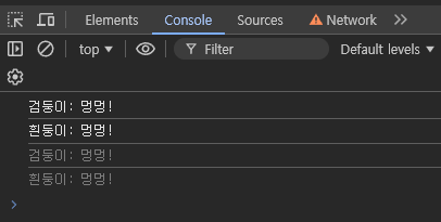 whiteDog.bark(); // 흰둥이: 멍멍!