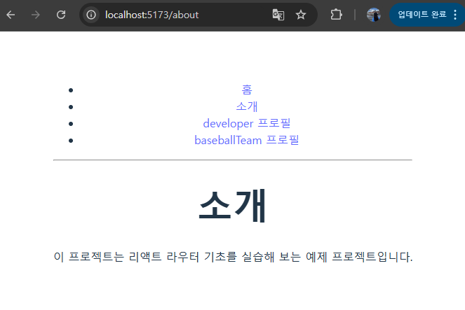 <p>이 프로젝트는 리액트 라우터 기초를 실습해 보는 예제 프로젝트입니다.</p>