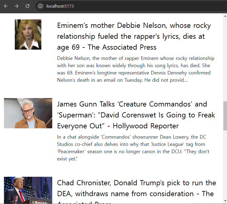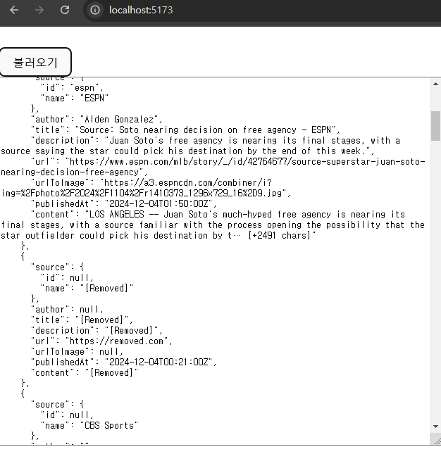 이제 NewsList 컴포넌트에서 연습 삼아 사용했던 API를 호출해 보자!