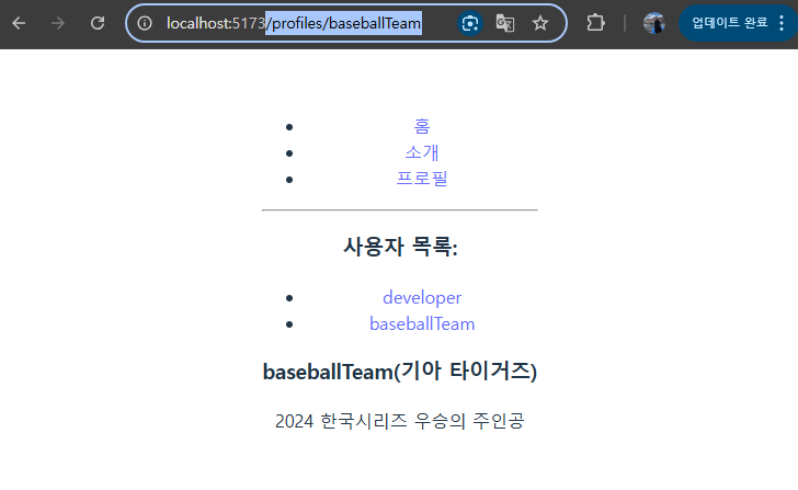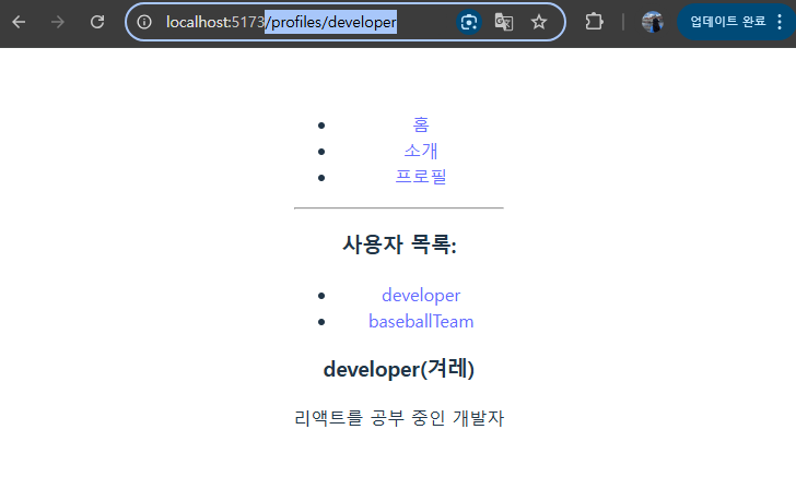 기존 App 컴포넌트에서는 두 종류의 프로필 링크를 보여 줬음.