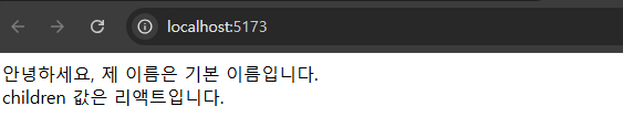 MyComponent 태그 사이에 작성한 리액트라는 문자열을 MyComponent 내부에서 보여 주려면 props.children 값을 보여줘야 함.