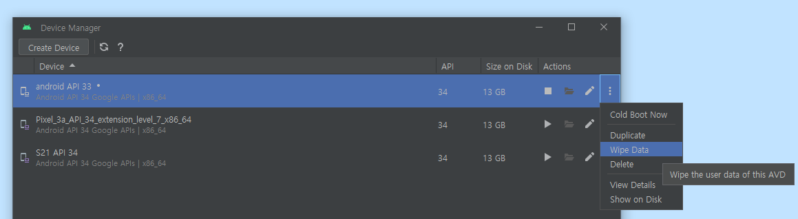 [ERR] Error 1 retrieving device properties for sdk gphone64 x86 64: