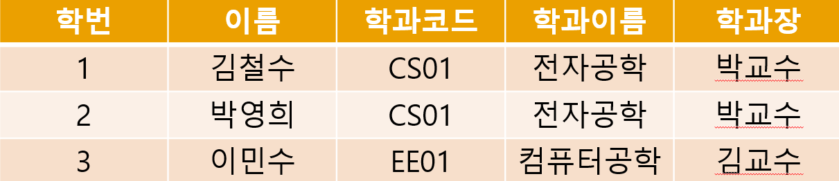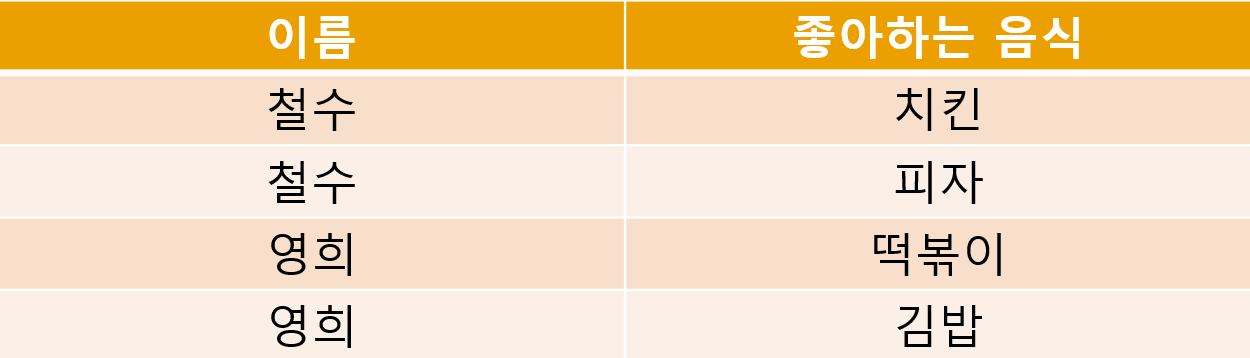 - 제 1 정규화 ~ 제 5 정규화까지 존재 (보통, 제 3 정규화까지 진행)