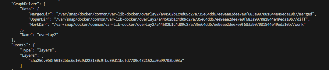 RootFS.Layers에 sha256으로 시작하는 레이어가 존재함을 확인 가능합니다.