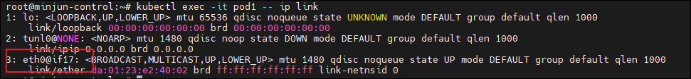 kubectl exec -it pod1 -- ip link - Pod 내부의 NIC 확인