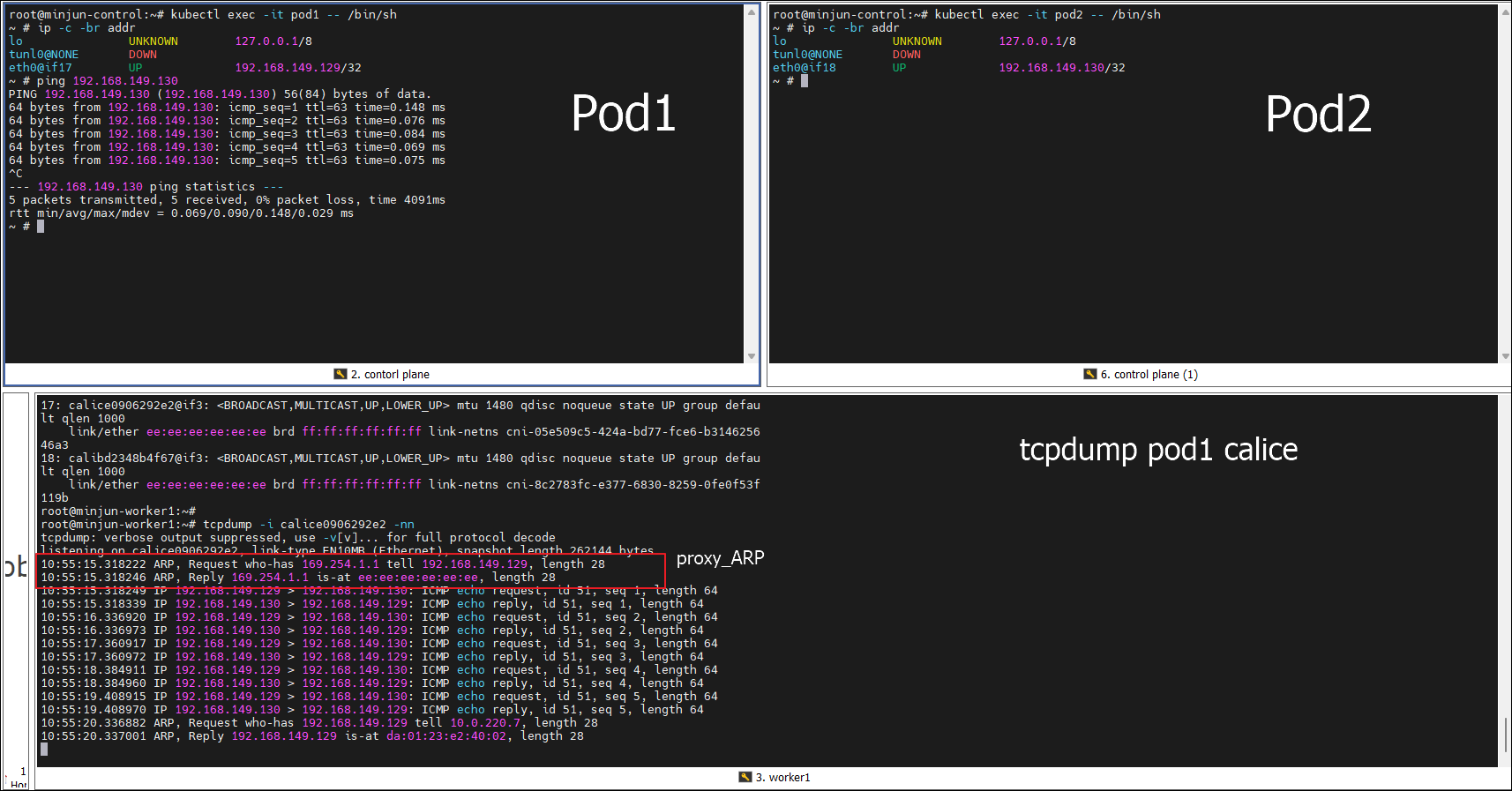 Calico CNI를 활용하는 경우, Pod 간 통신 시 Proxy_ARP를 활용하게 됩니다.