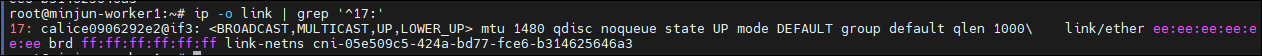 정말 Pod의 NIC인 eth@if17이 Host의 calice0906292e2 NIC와 pair 되어있을까?