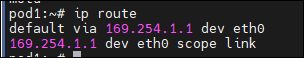 --> Pod1 내부에는 ip route가 다음과 같음: