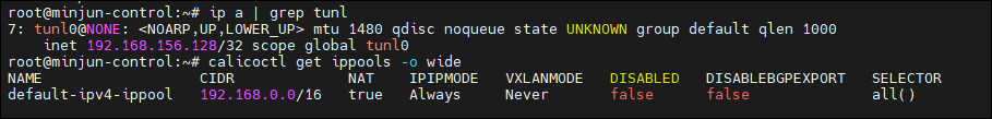 calicoctl get ippools -o wide - IPIPMODE = Always 인경우 IPIP 터널링 사용
