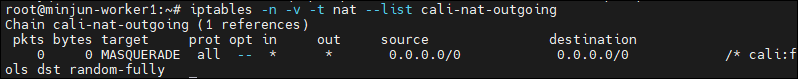 iptables -n -v -t nat --list cali-nat-outgoing - iptables에 설정된 NAT 설정 조회