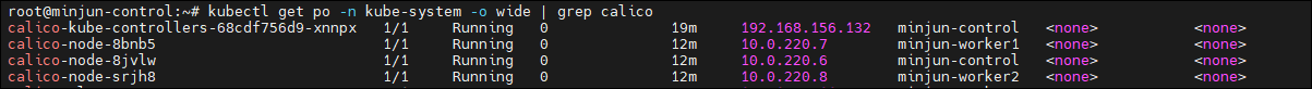 -> Control Plane에서 정상적으로 Calico Pod 동작 확인