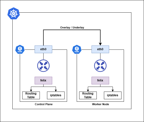 이전에 알아봤던, Flannel이 Tunneling(vxlan, ip-in-ip)를 통한 Overlay Network인 점과는 다른 점이라고 할 수 있습니다.