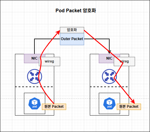 WIrdGurad 모드는 Pod Packet을 암호화하여 통신합니다. 해당 모드 사용 시, wiregurad 인터페이스가 생성되며, 해당 인터페이스가 패킷을 암호화/복호화합니다.
