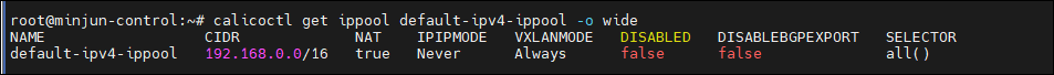 calicoctl get ippool default-ipv4-ippool -o wide - vxlan 활성화 확인