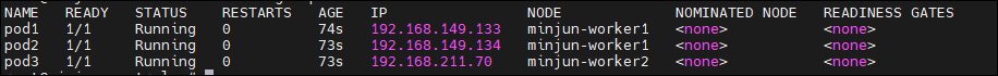 간단한 Pod를 3개 생성합니다.
