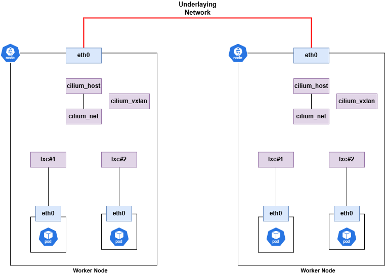 Cilium은 Overlay(VXLAN) 및 Underlay(Native-routing) 모드를 둘 다 지원합니다.