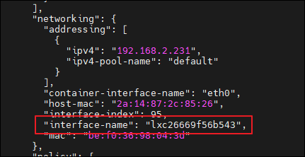 networking 항목에서 엔드포인트와 연결된 lxc NIC 명 확인 가능