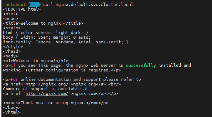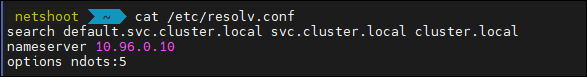 참고: netshoot에 설정된 resolve의 nameserver IP는 CoreDNS의 Service IP입니다.
