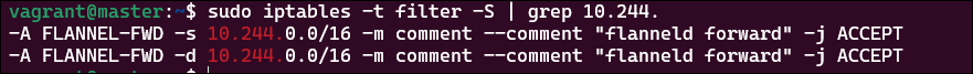 sudo iptables -t filter -S | grep 10.244.