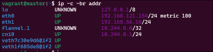 Flannel CNI는 flannel.1(vxlan) 인터페이스 및 cni0 인터페이스를 Master Node에 추가합니다.