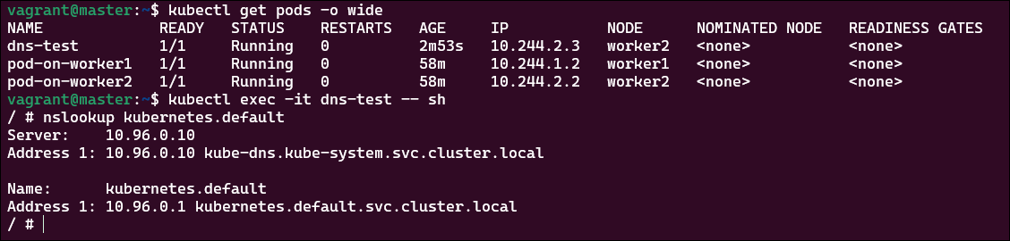 kubectl run dns-test --image=busybox:1.28 --rm -it --restart=Never -- sh