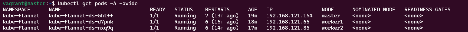 Flannel CNI는 데몬셋으로 실행됩니다. 그렇기에, 각 노드마다 Flannel Pod가 실행되는 구조입니다.