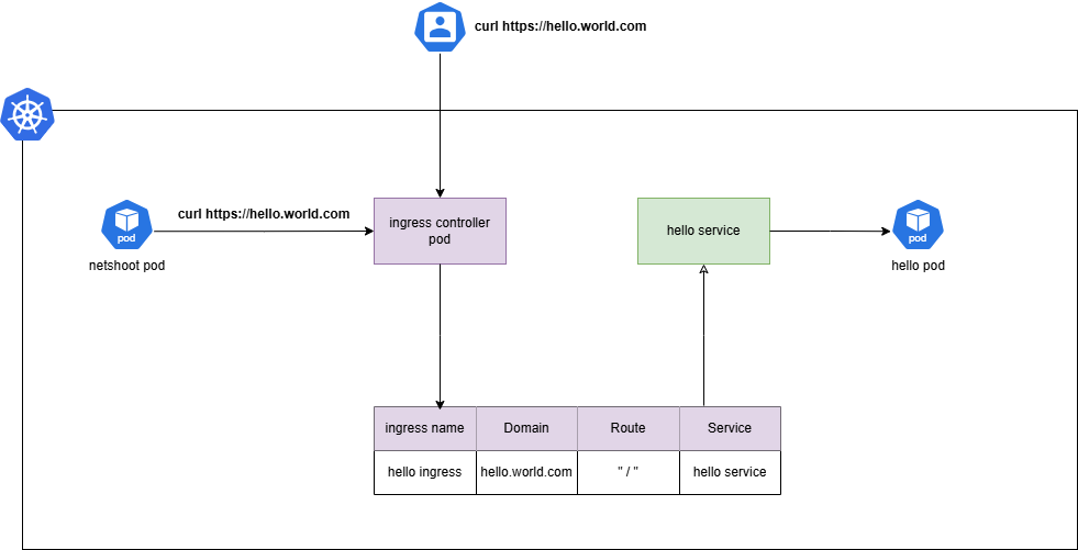 echo "<worker1 pub ip> hello.world.com" | sudo tee -a /etc/hosts