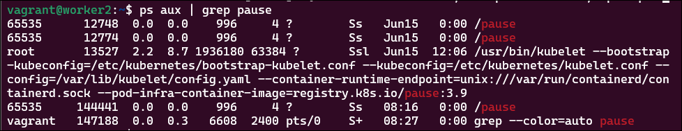 ps 명령어를 통해 pause 프로세스가 실행됐는지 확인 가능