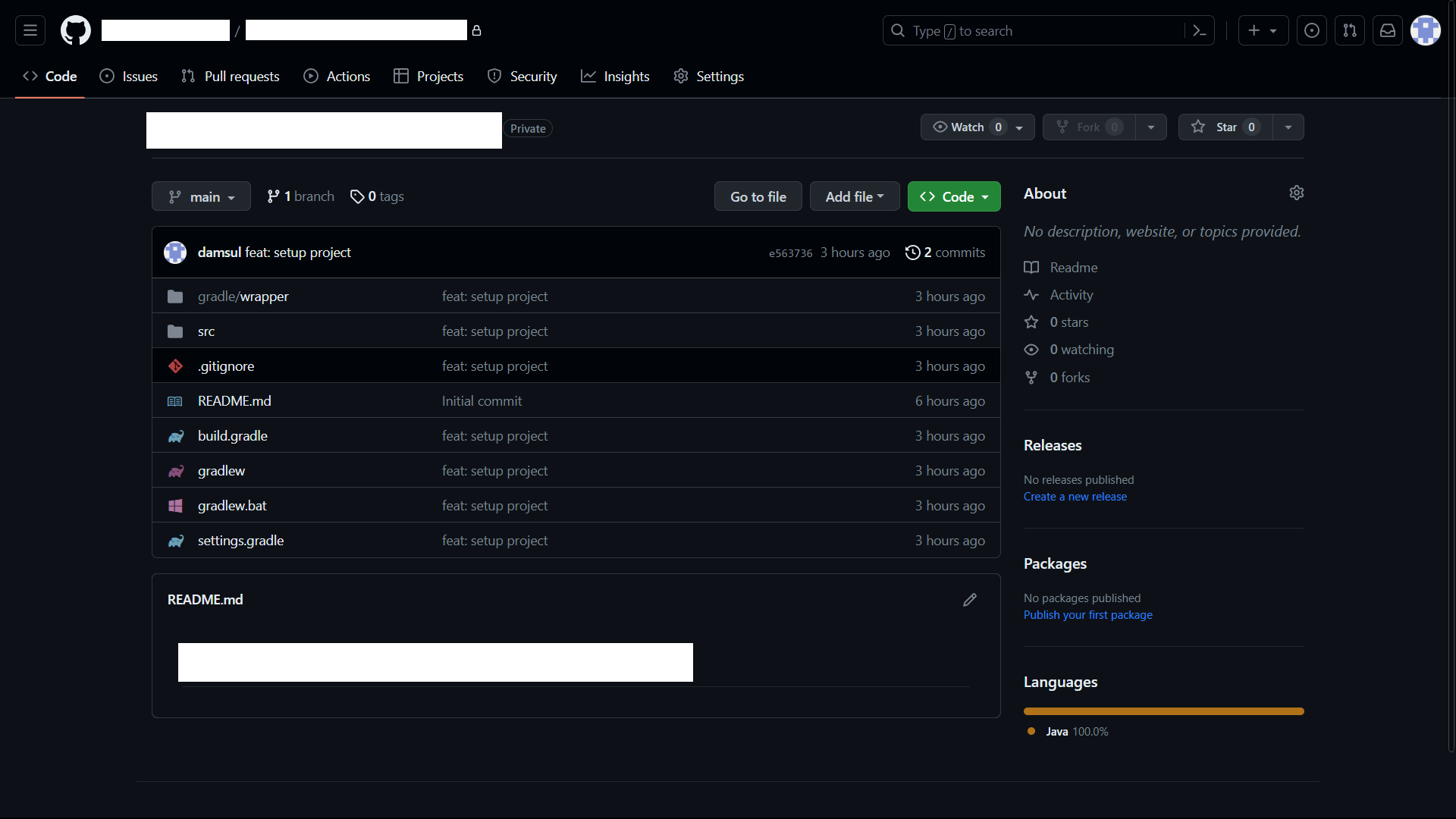 프로젝트 파일을 옮기고 push까지 실행해 프로젝트 초기 설정을 마쳤다.