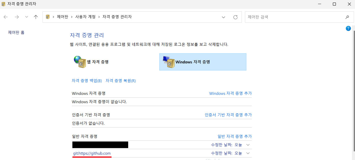 편집을 누르고 사용자 이름과 암호를 자신이 사용하는 깃허브 username과 토큰을 입력한다.