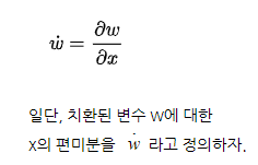 w의 편미분이라 정의하자.