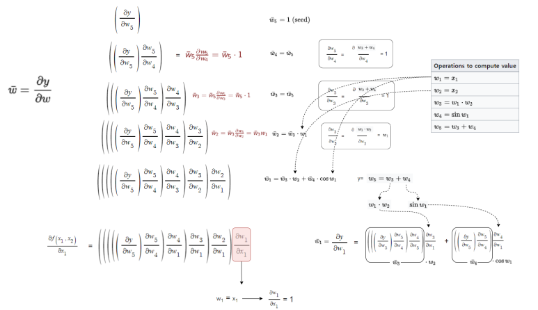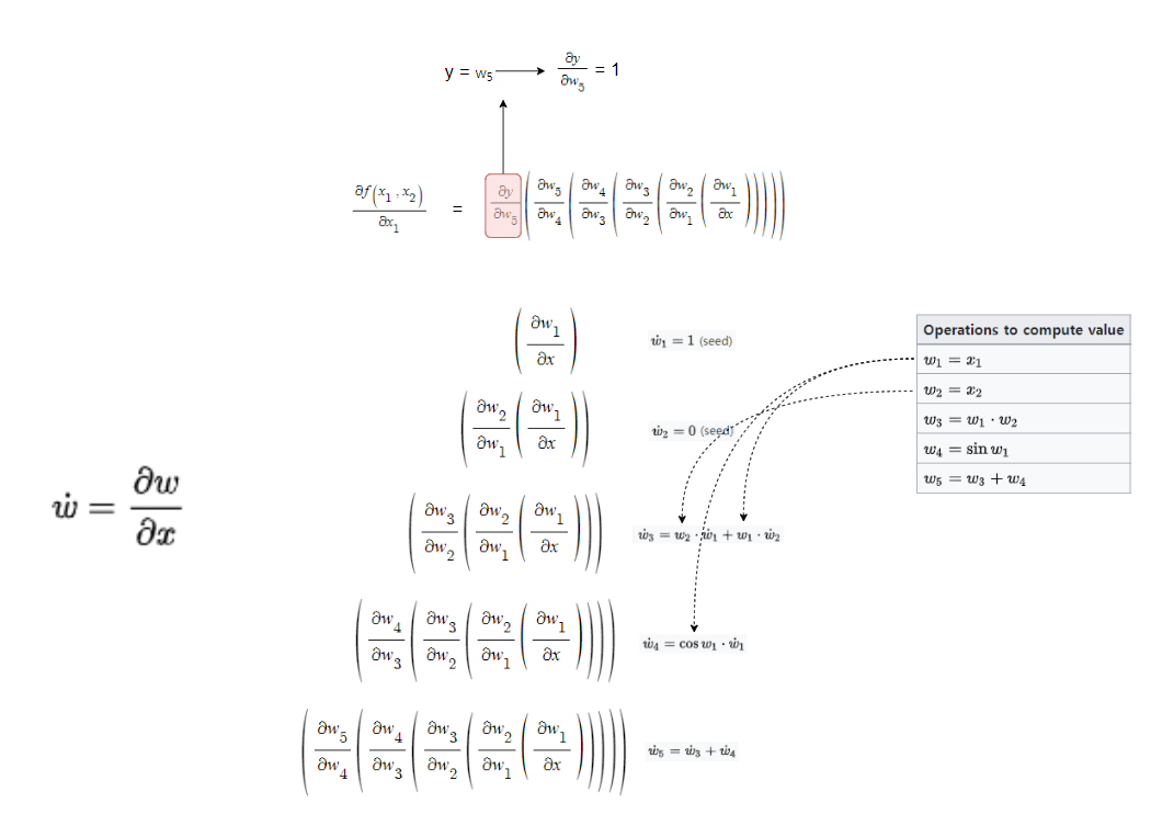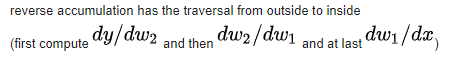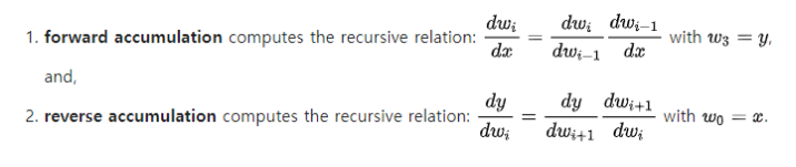 이때 Forward accumulation 방법과, Reverse accumulation 방법이 있다.