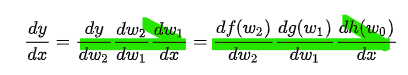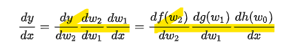 각각 chain들의 미분값들을 알아낸다음