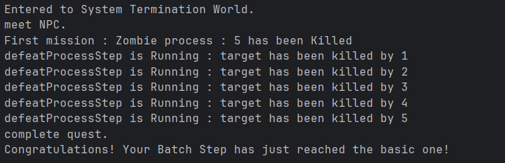 System.out.println("defeatProcessStep is Running : target has been killed by "+ terminated);