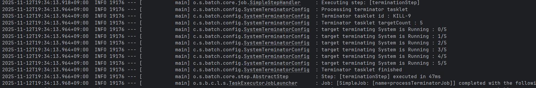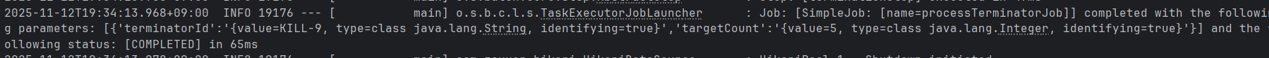 이 CLI를 실행하였을때 정상적으로 batch 실행 동작을 확인할 수 있었다.
