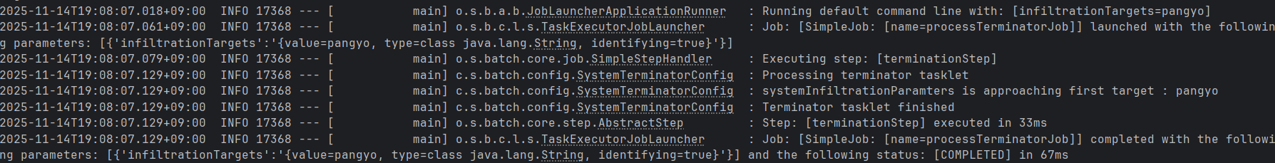 ./gradlew batch:jobParameters:bootRun --args='--spring.batch.job.name=processTerminatorJob infiltrationTargets=pangyo'