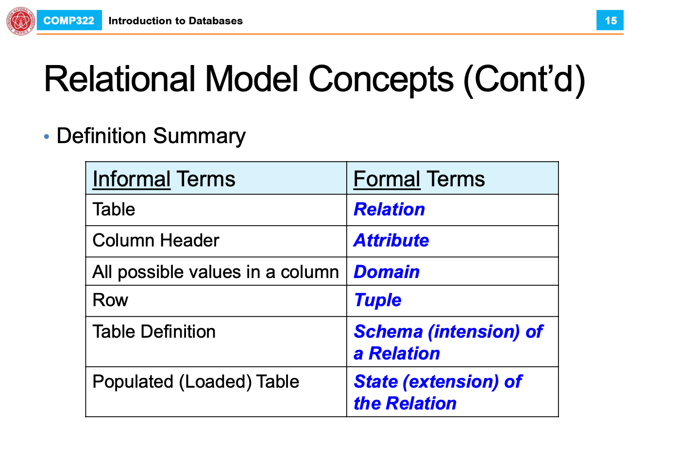 row 들의 집합으로 구성되어있다. 이 말은 Row들의 중복을 허용하지 않음을 뜻한다.