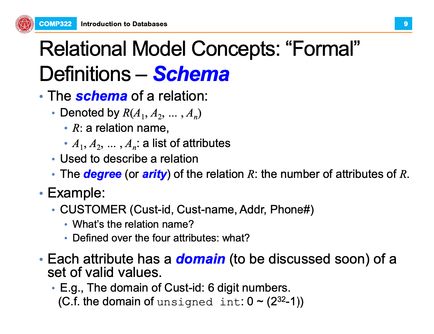 relation schema는 순서를 지키고 각각의 domain이 있는것이다.
