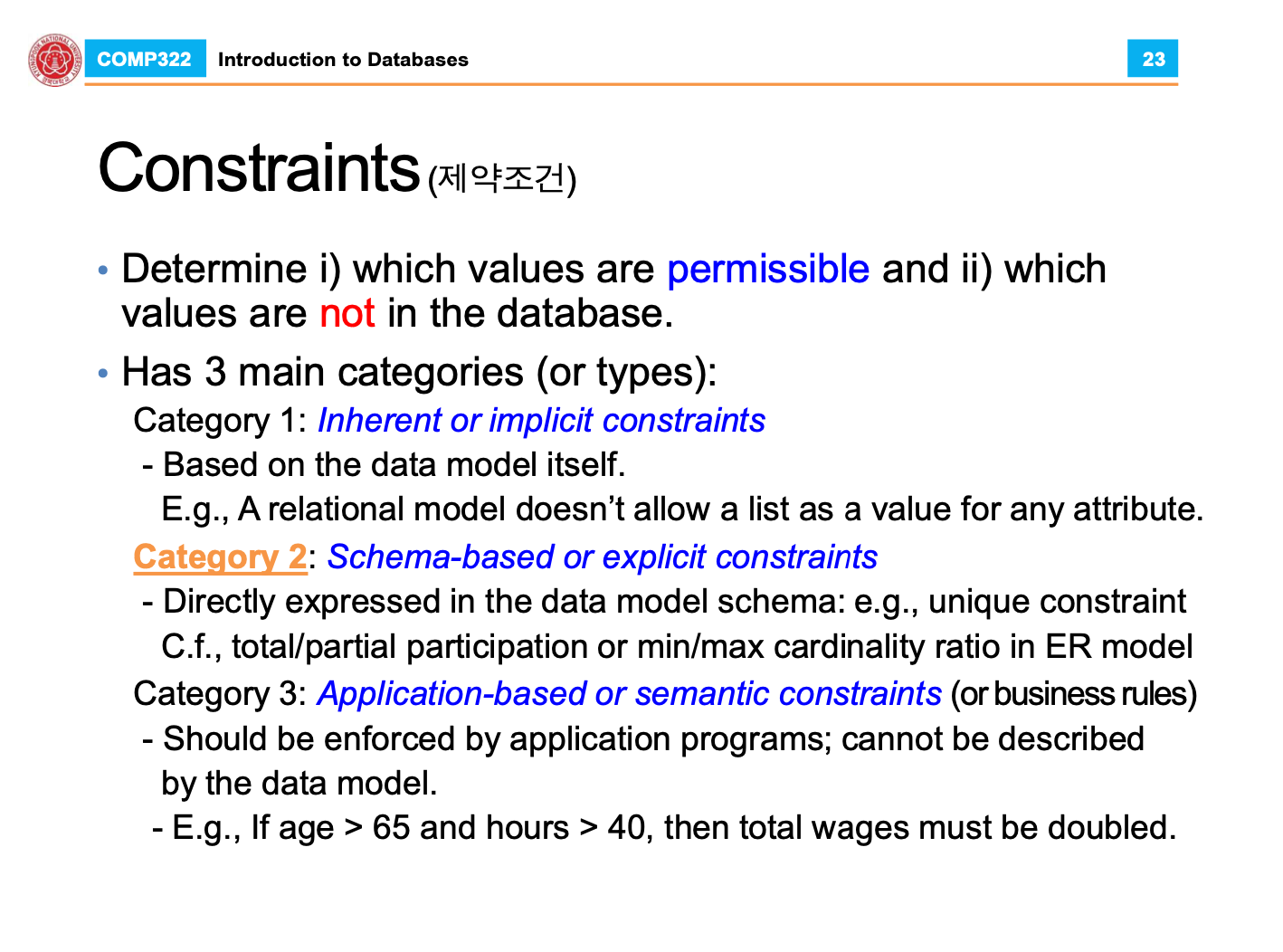 또한 Domain constraints 로 도메인 벗어난 값을 허용하지 않는다.