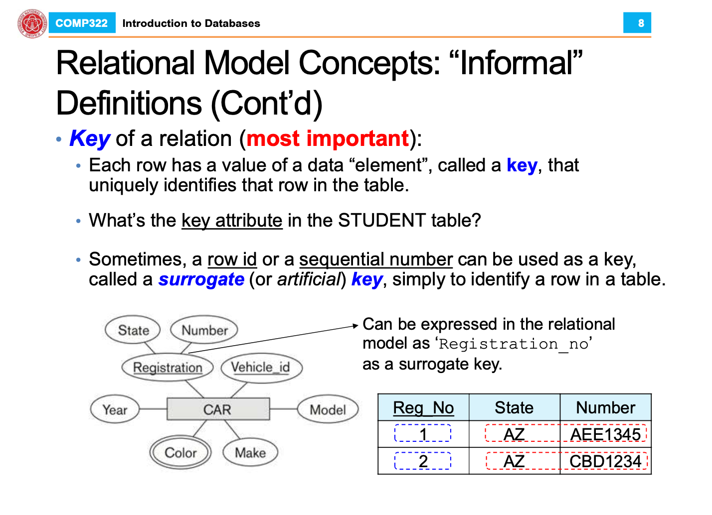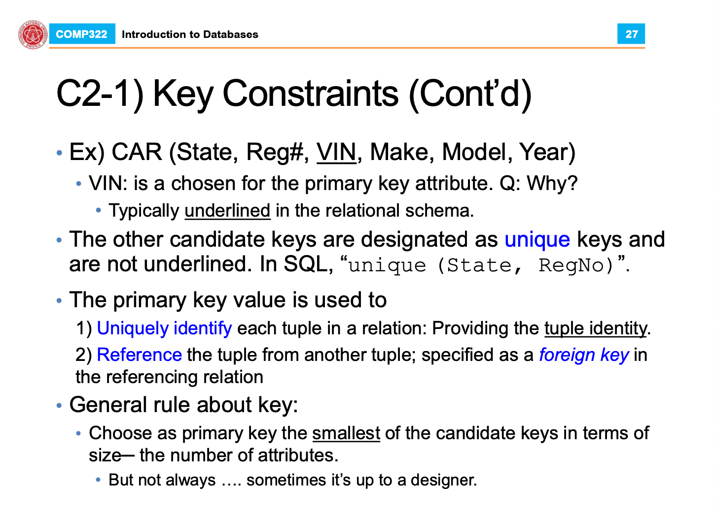 그래서 STUDENT table 의 Key attribute 는 STUDENT 들 만 가질수있는것이 KEY 가 되면 되지 않겠나?