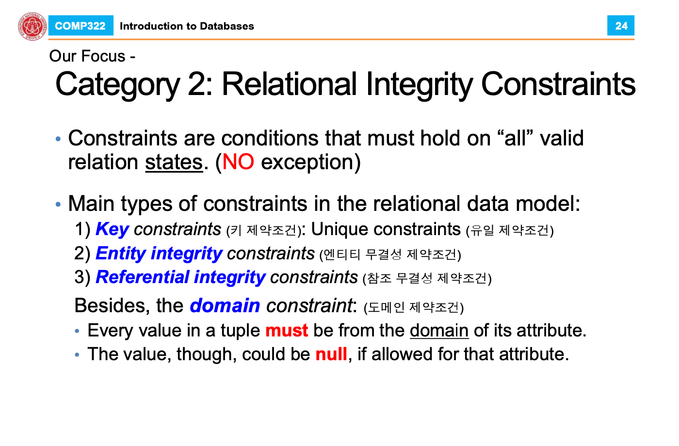 이 제약조건이 없으면 관계형 Model 이 흠결이 있다는것이다