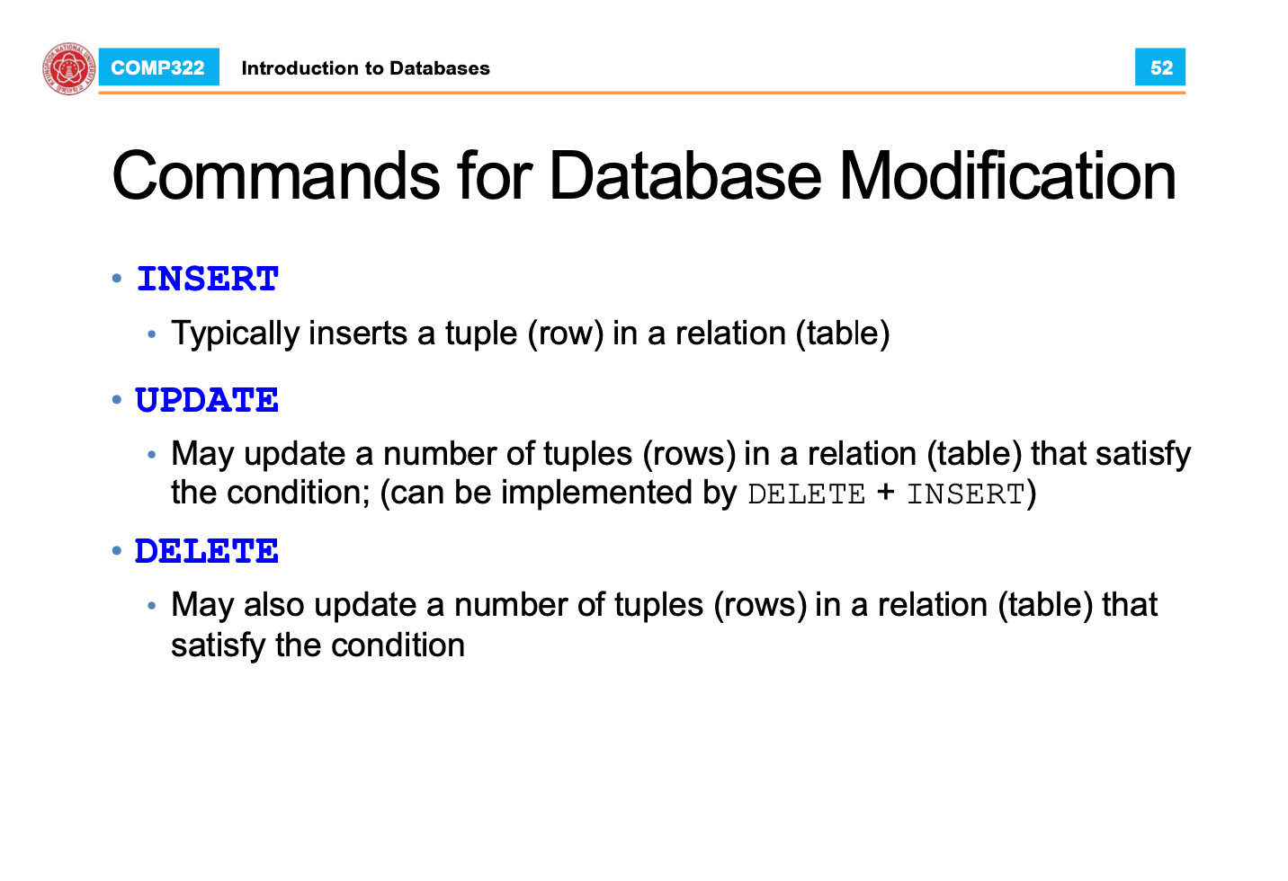 INSERT 는 삽입 UPDATE 는 수정 DELETE 는 삭제이다.