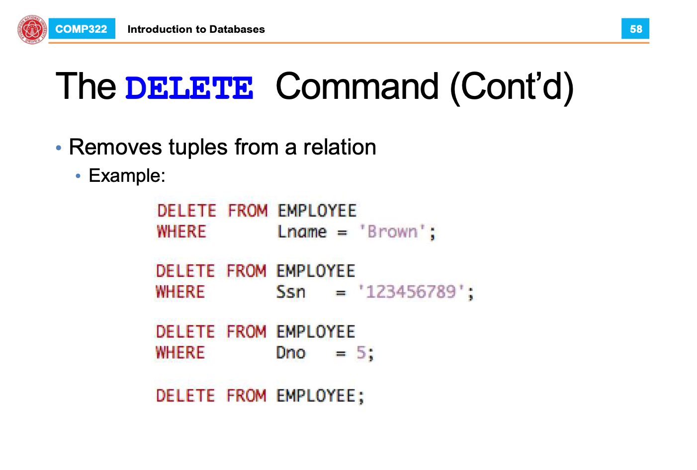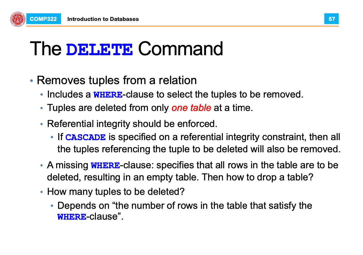 어떤 조건을 충족되 것을 삭제 할건가 적시해준다.