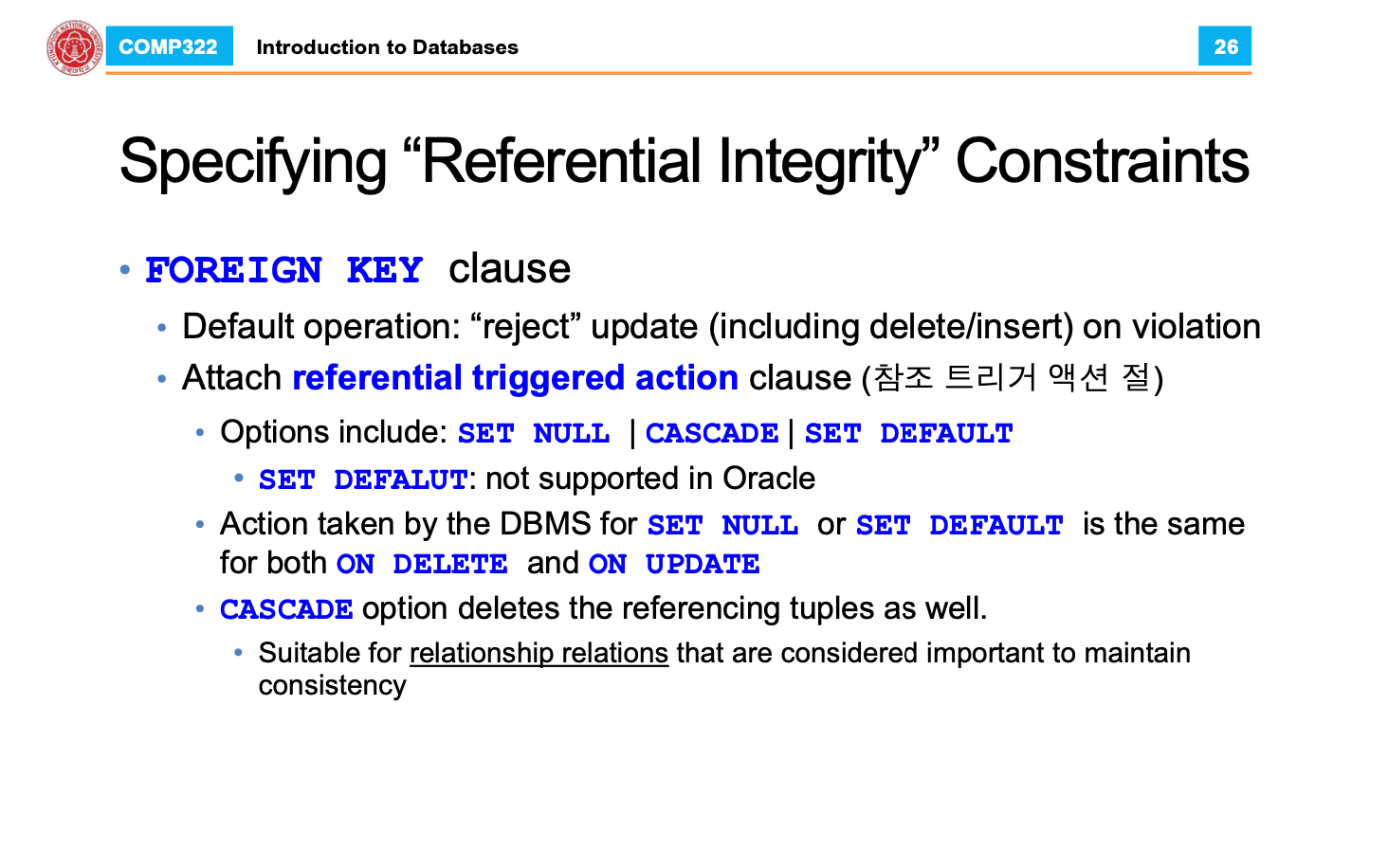 그리고 추가적인 Action 으로는 SET NULL,CASCADE,SET DEFAULT 가 있다.