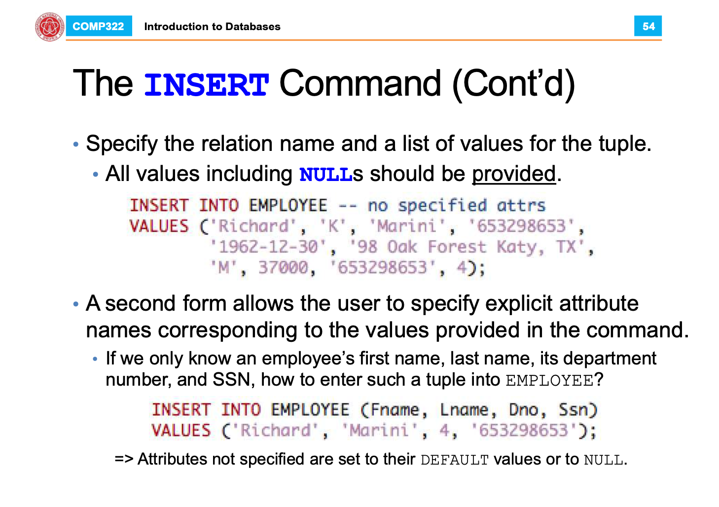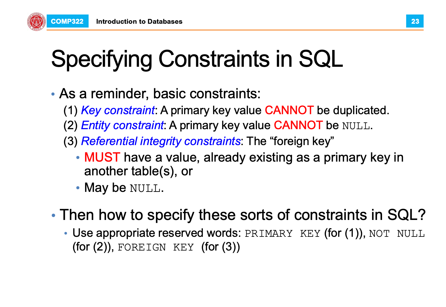 근데 값을 넣을때 Attribute 값을 빼고 넣으면 자동으로 NULL 이다. 근데 PK를 까먹고 안넣으면 바로 Entity Entegrity Constraints 이다.