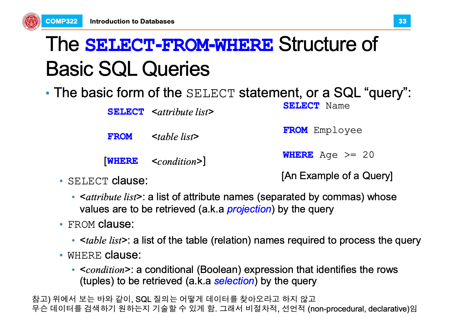 SELECT 는 Table 안의 Content 를 보고 싶다는 뜻이다.
