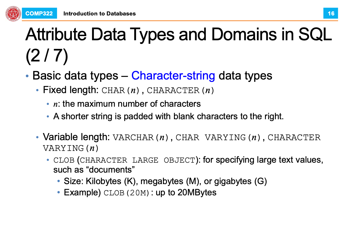 또한 CLOB(Character Large Object) 는 4k 보다 더 큰 규모의 Text 를 저장할때 쓴다