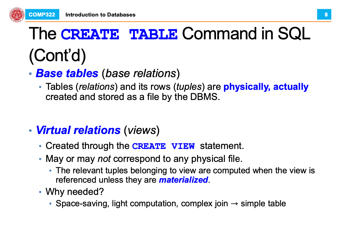 Base tables 는 실제 Record 가 생성되고 저장되는 table 이다.